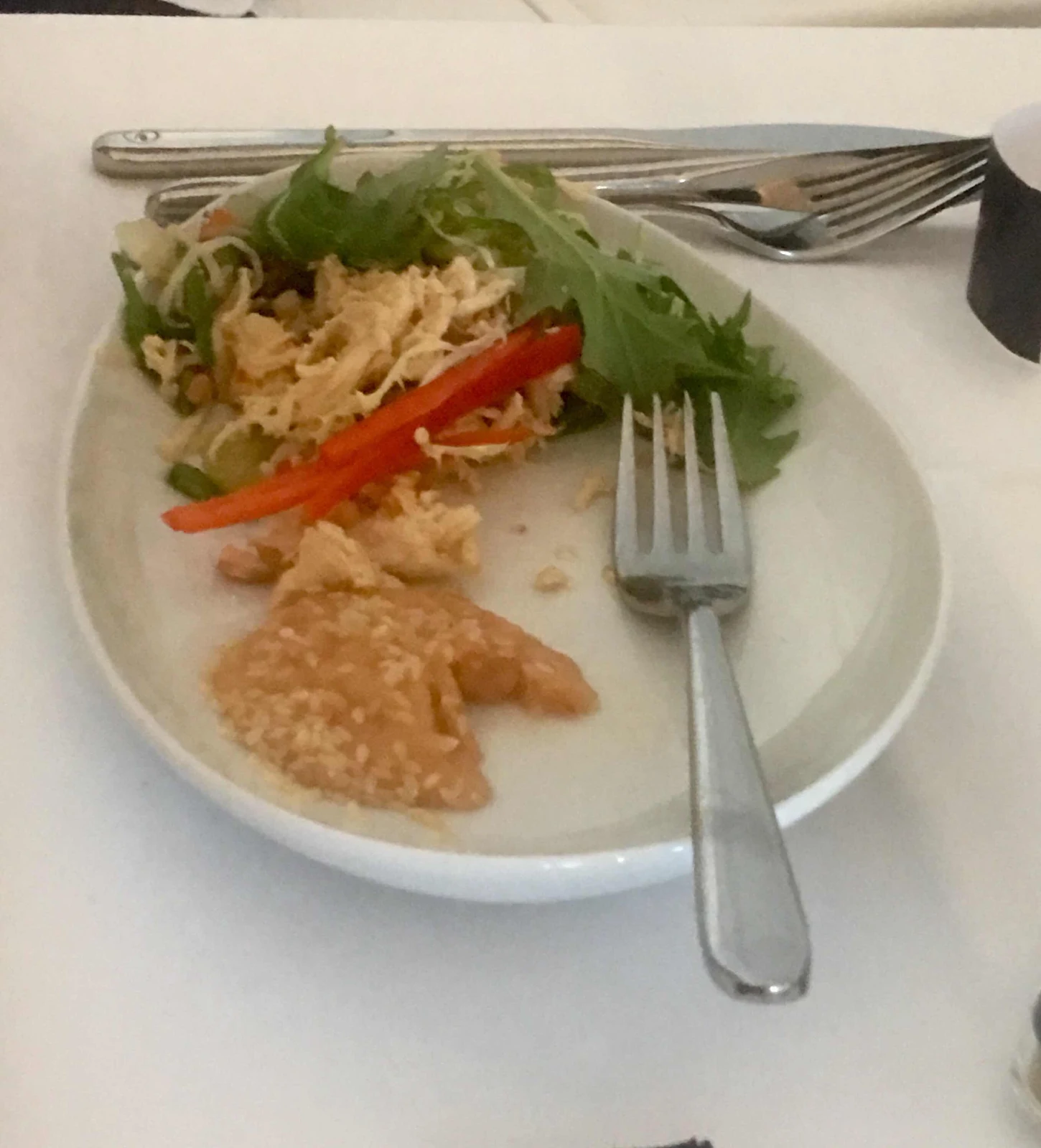 Our dinner was tasty, Kathy choosing a veal and asparagus dish, and Brian hitting the jackpot with a spicy shrimp plate.