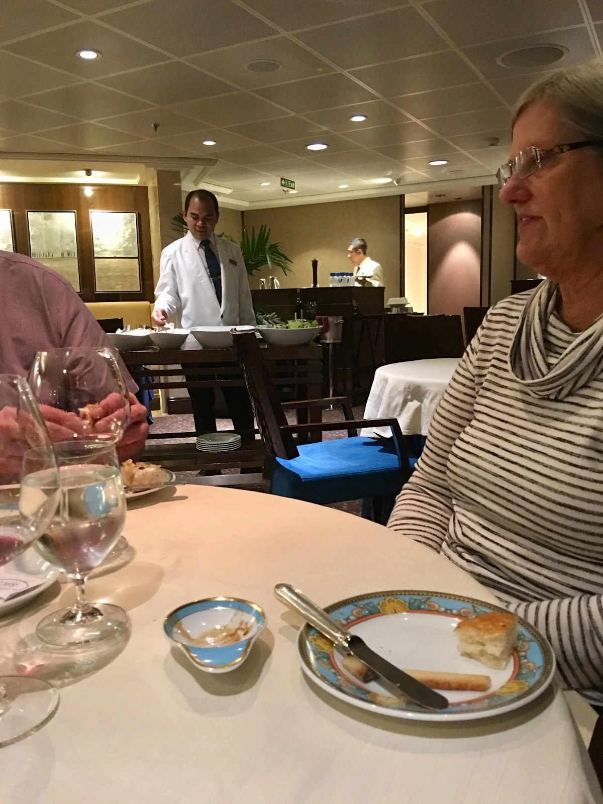 A light passenger load enables us to dine yet one more time in a specialty restaurant...