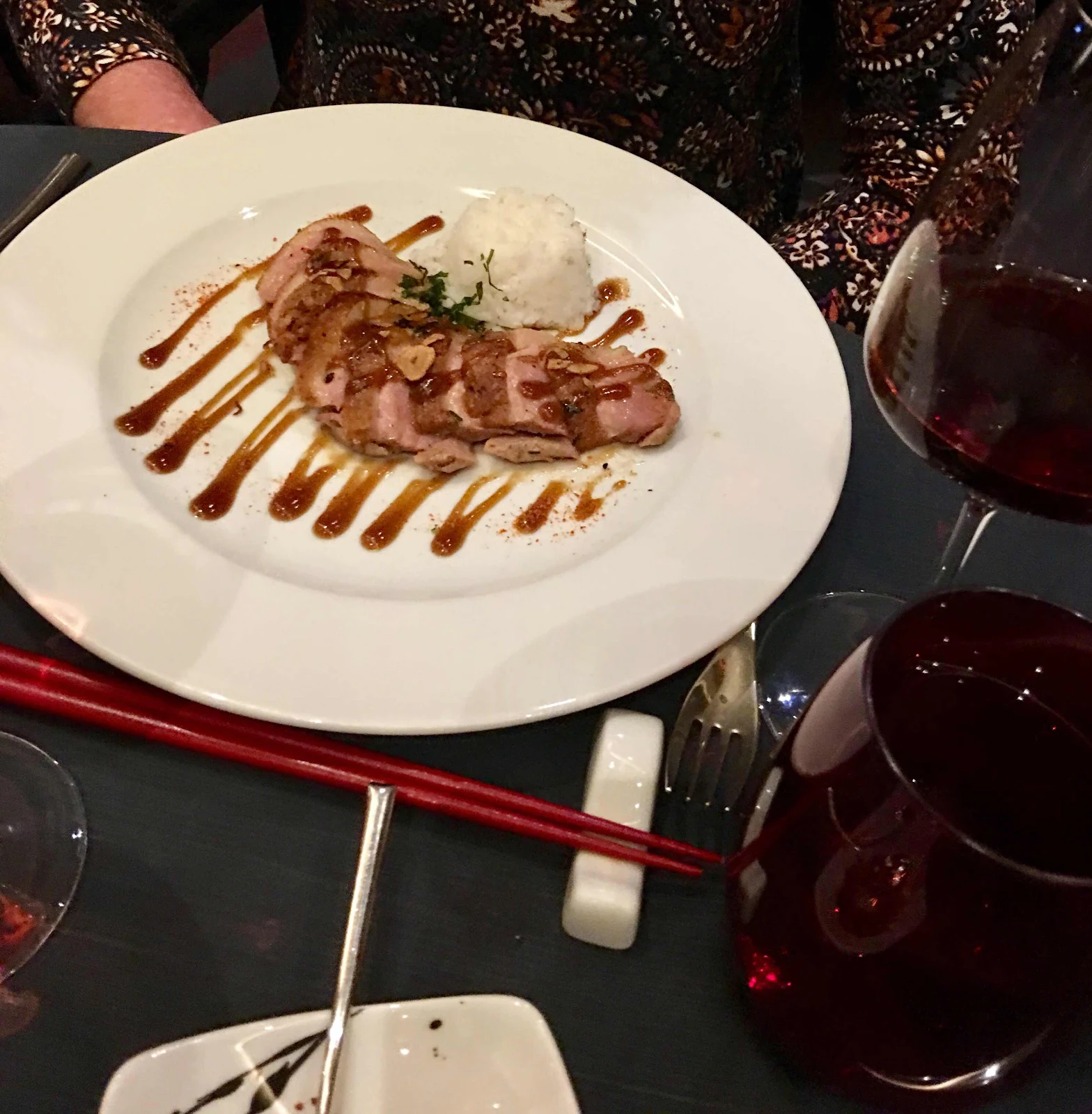 We share the signature dish of miso-steamed sea bass and judge it okay but not spectacular.