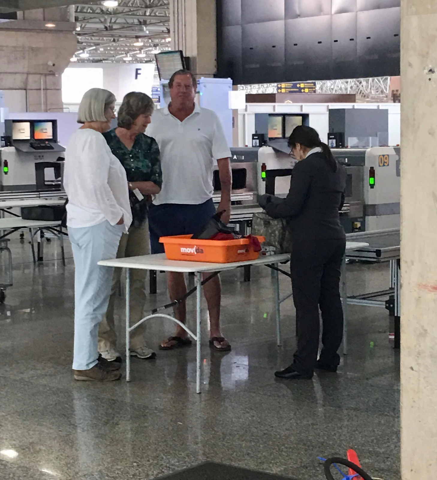 A slight stop at security when some lotion in Tom’s carry-on bag arouses their interest.