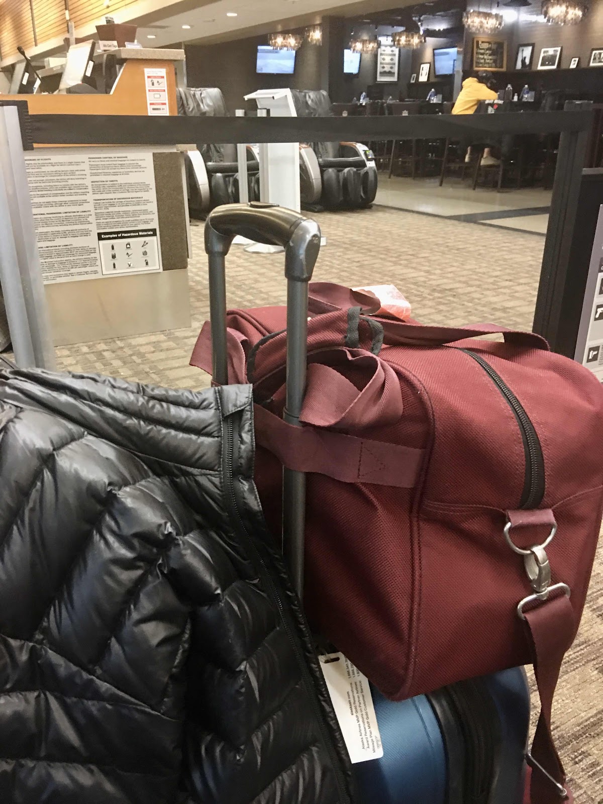 Waiting for our gate-checked bags at Seattle...