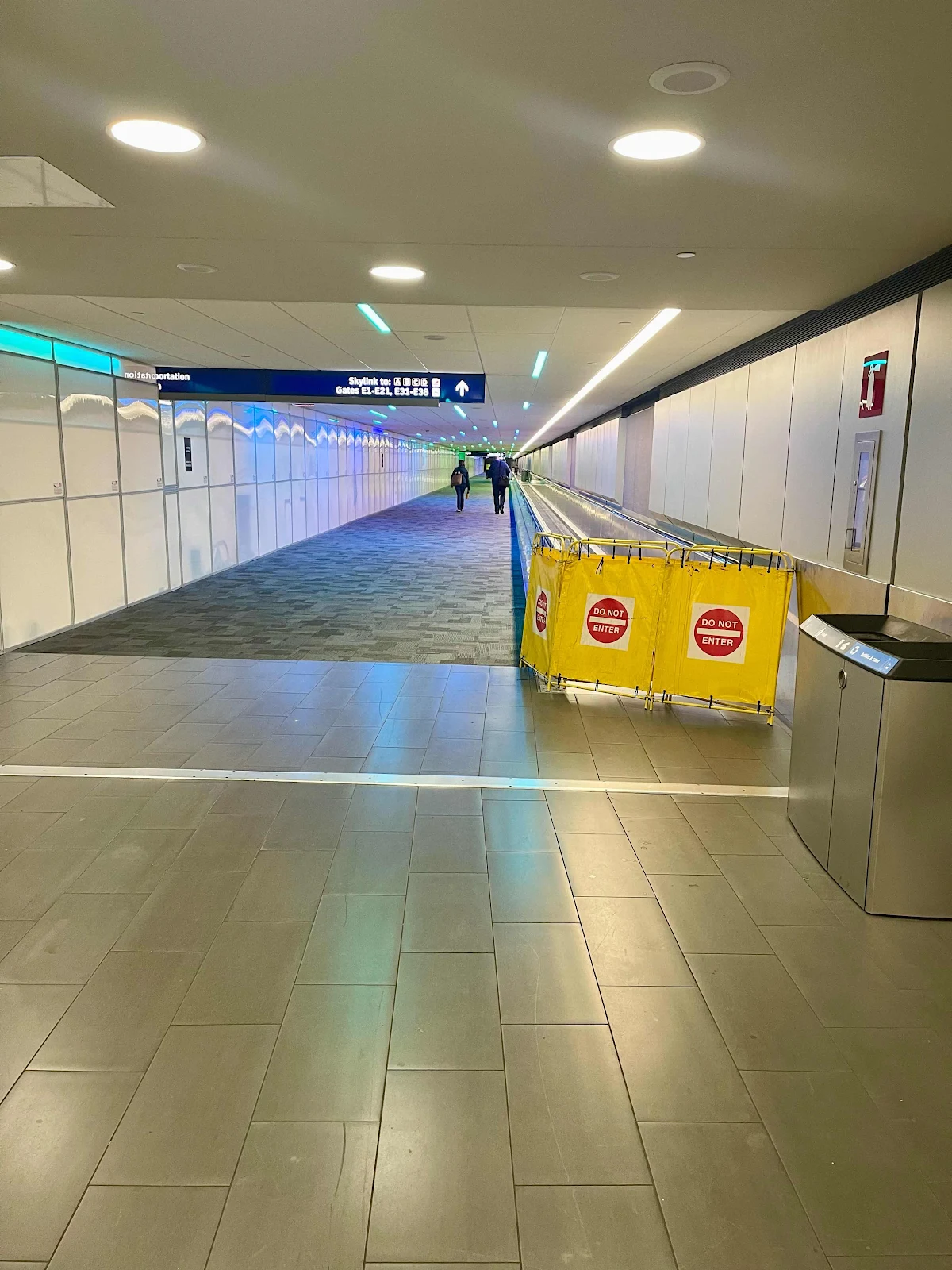 We walk and walk and eventually go through the automated immigration gates without a problem. We walk some more and travel down two sets of escalators, arriving just in time to miss the automated train that runs back and forth between here and Baggage Reclaim.