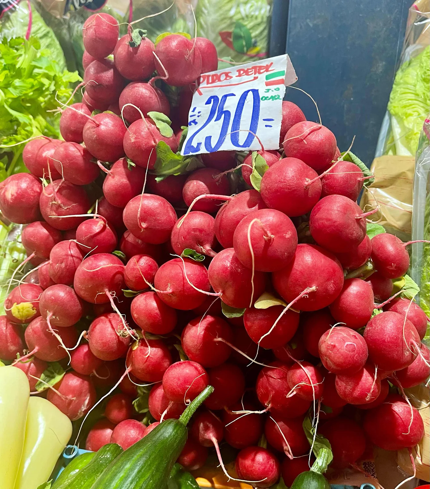 The displays of meats, poultry, fish, and vegetables were as impressive as those in any market we’ve visited.