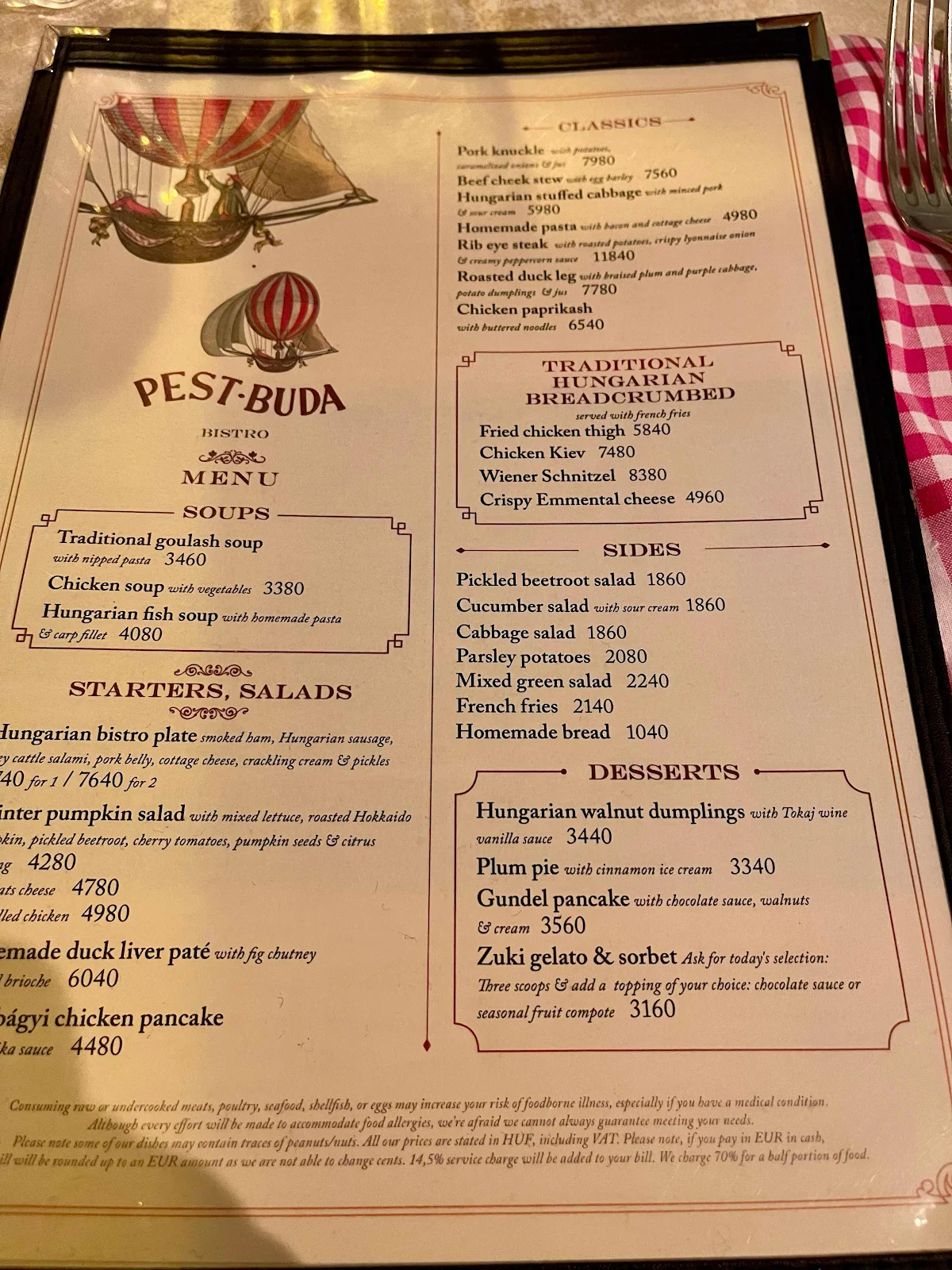 We had dined in the Hilton’s restaurant the first night of our stay, and the restaurant manager, whom we’d met in the Executive Lounge, suggested we try the nearby Pest-Buda Bistro Sunday evening. Off we went.