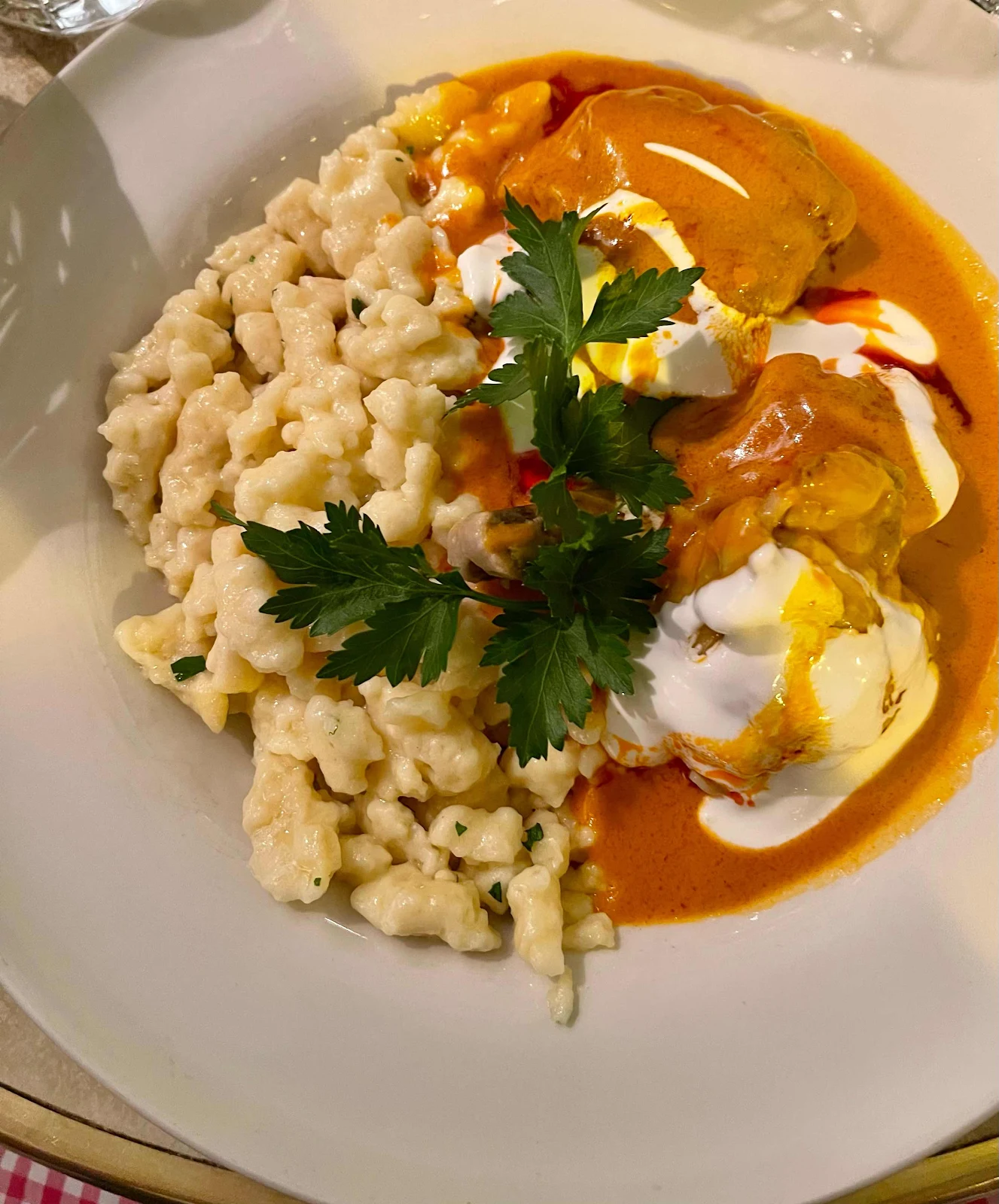 Kathy, of course, selected chicken paprikosh, which she enjoyed, while still preferring her own spicier version.