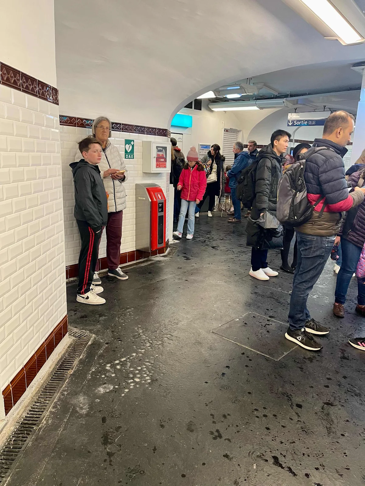 After this large and satisfying lunch, we started to walk to Notre-Dame, but rain and thunder disrupted that plan. Our hotel umbrellas came in handy, but we still took shelter in a Métro station for awhile.