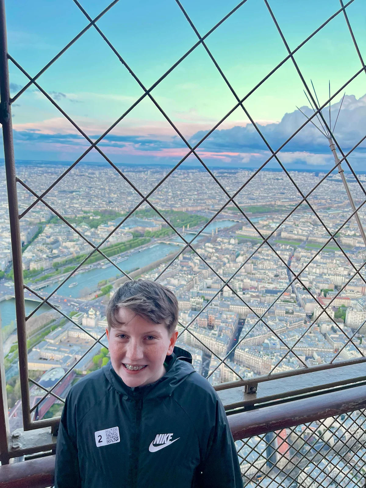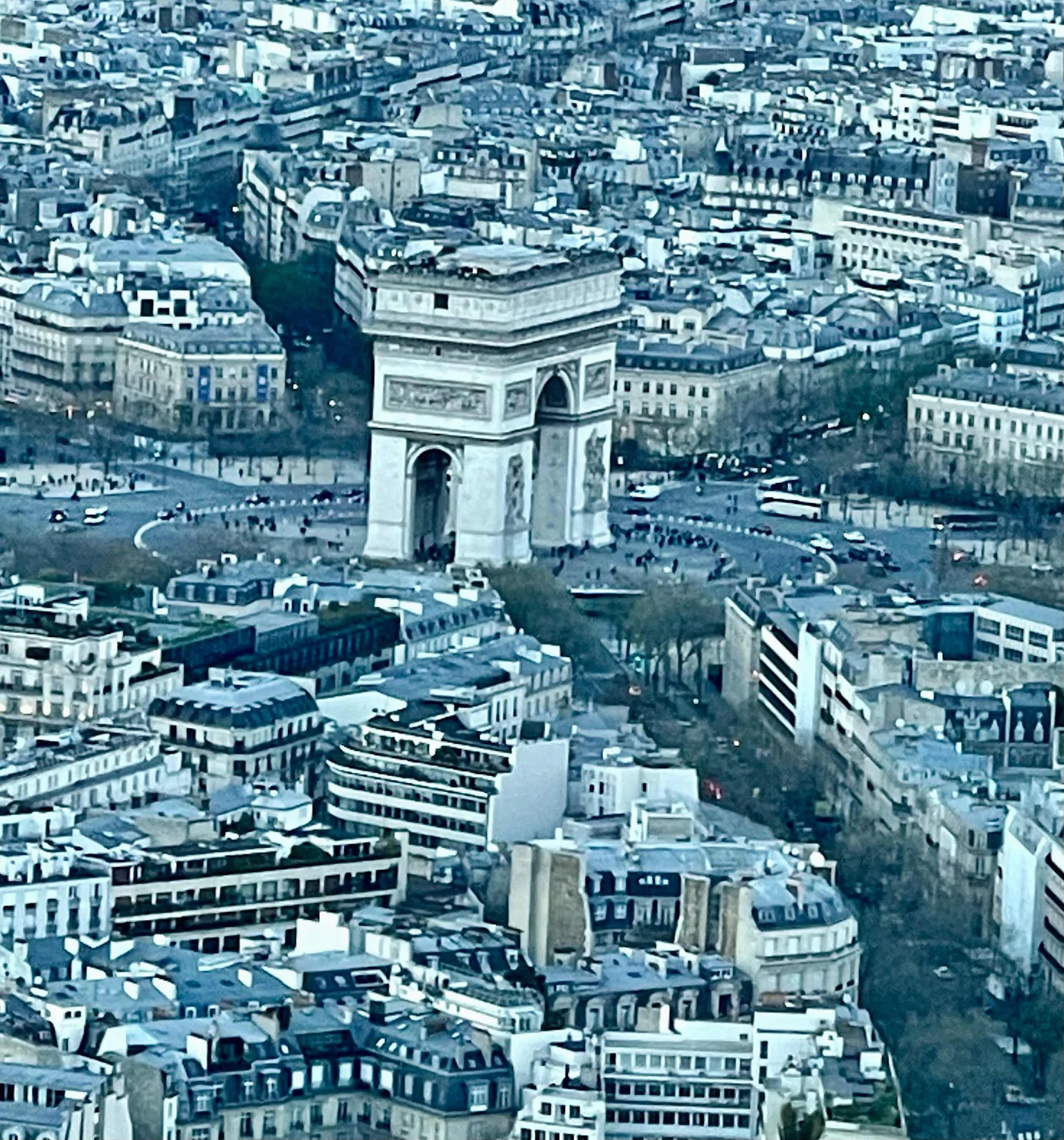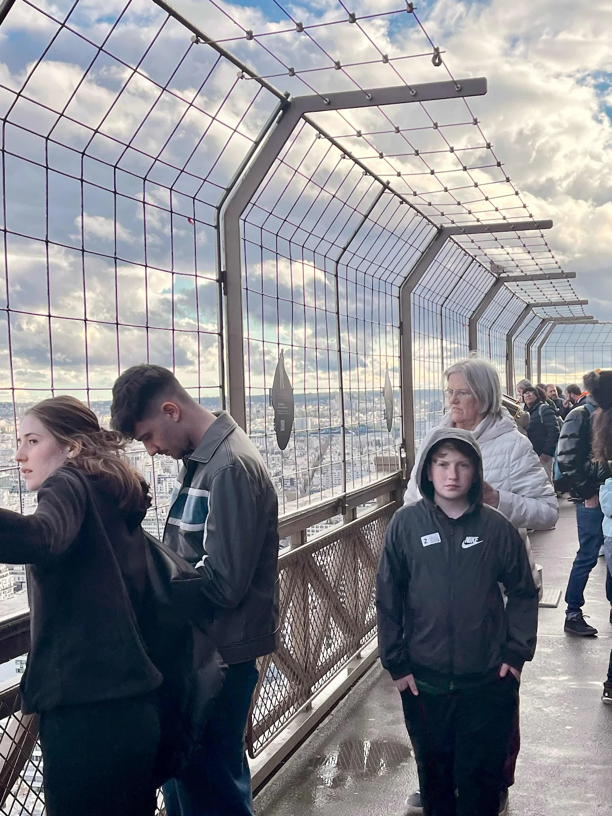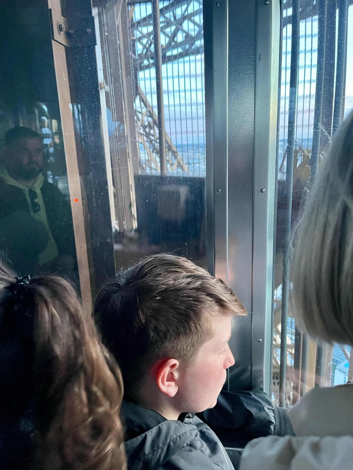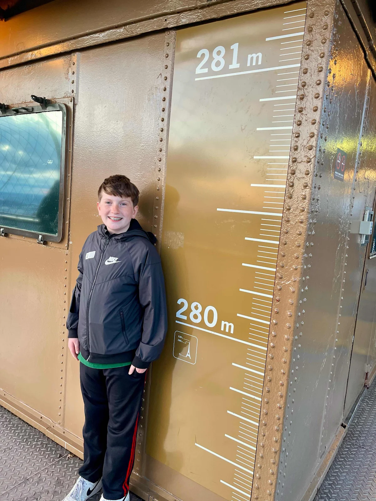 Eventually it was our appointed time to ride up the tower to the second level, and then onward to the summit, about 900 feet up, the tallest manmade structure in the world until surpassed by New York City’s Chrysler Building in 1930. In a low-rise (by choice) city, it’s still an impressive creation.
