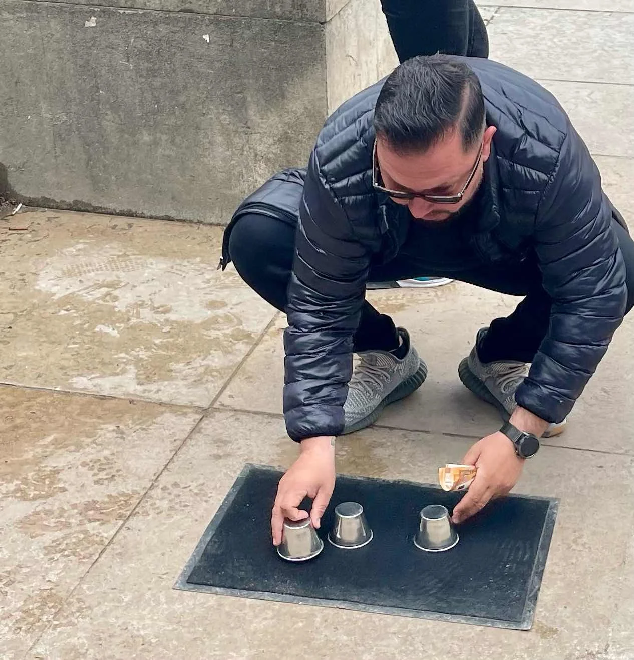We also watched three different hustlers playing the “shell game,” complete with their own shills scoring big wins to attract bets from the gullible. Jace enjoyed watching the fancy moves.
