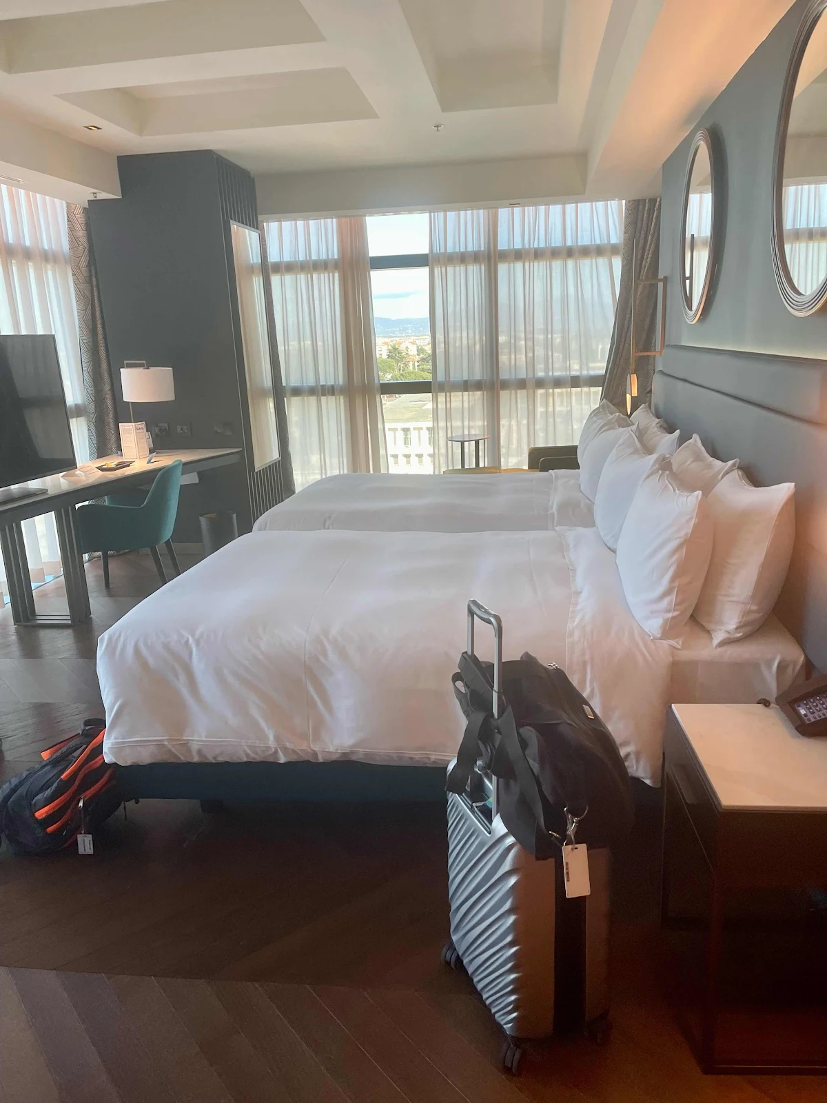 We travelled First Class on ItaliaRail from Venice to Rome Termini, and made our way from there to the Hilton Rome EUR La Lama, a modern 400-room high-tech hotel that offered us a corner room upgrade.