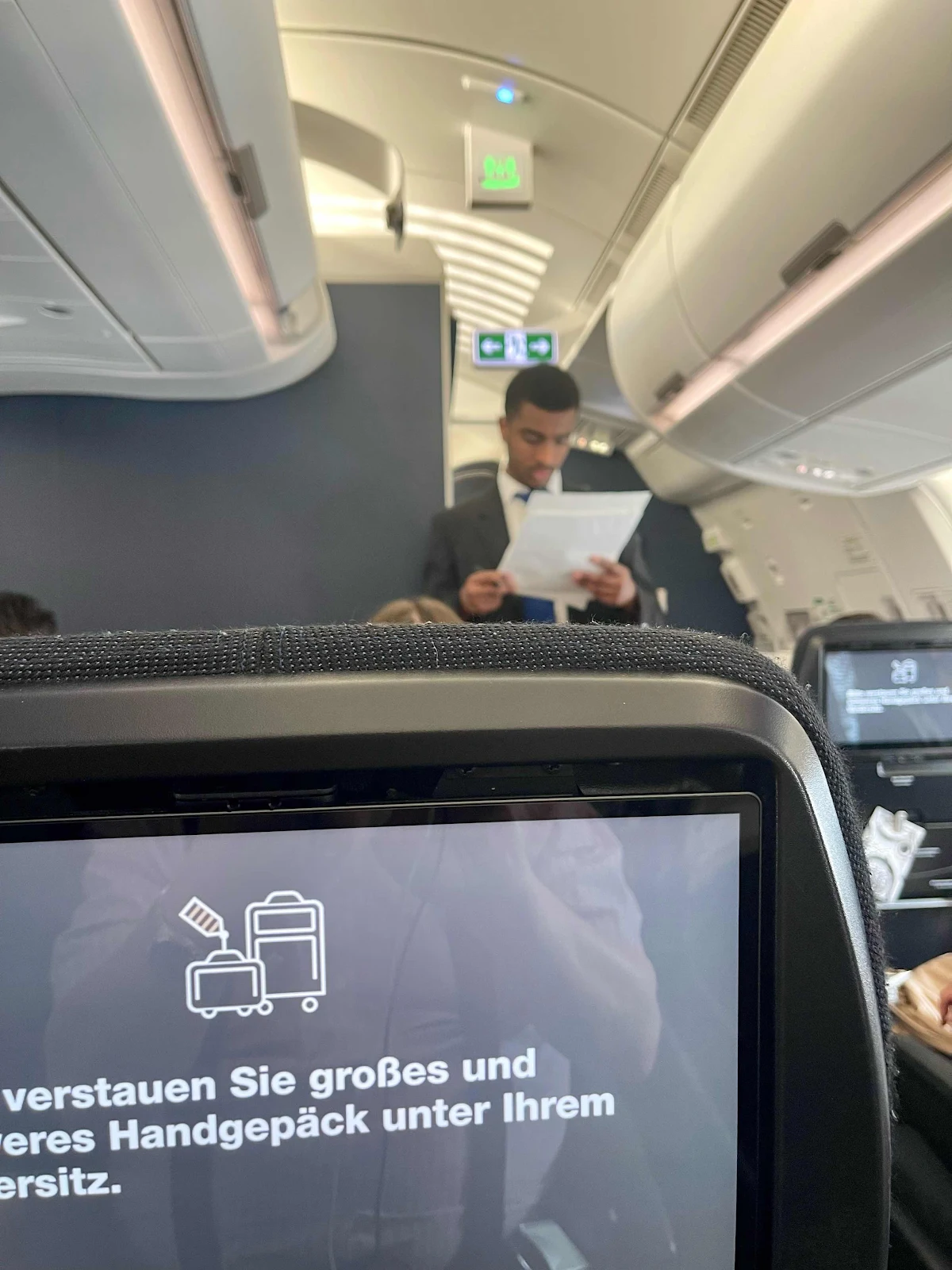 When we were finally in our premium economy seats (not bad), an announcement was made that employees would have to check boarding passes again, causing numerous pssengers to leap up to the overhead compartments to retrieve them. While we had duplicates on our phones, we were never asked, and for the next 30 minutes or so employees would call out the odd name and then huddle amongst themselves.