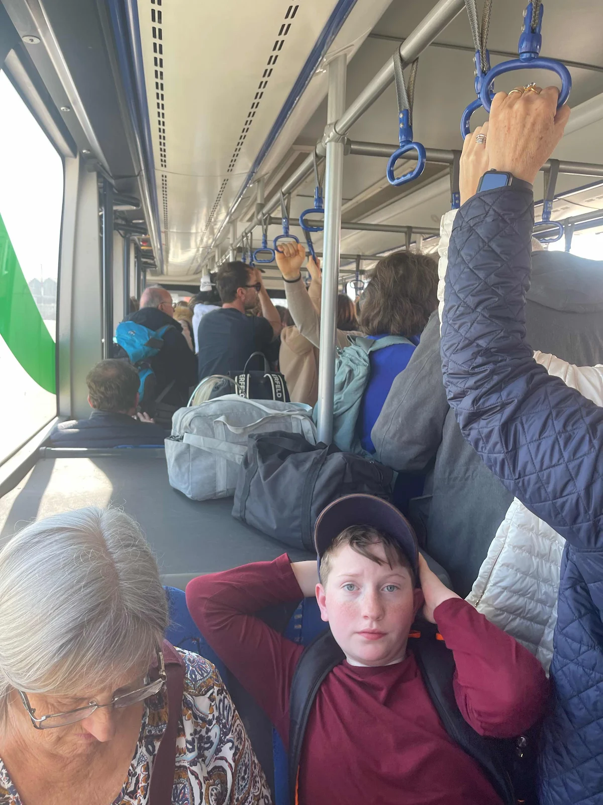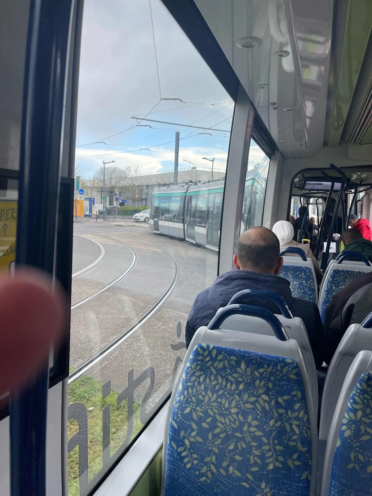 We picked up our stored luggage at the hotel and  got as far as Orly via the Mètro and a funny little streetcar thingy that accepted the remainder of our strip of 10 Mètro rides as payment.