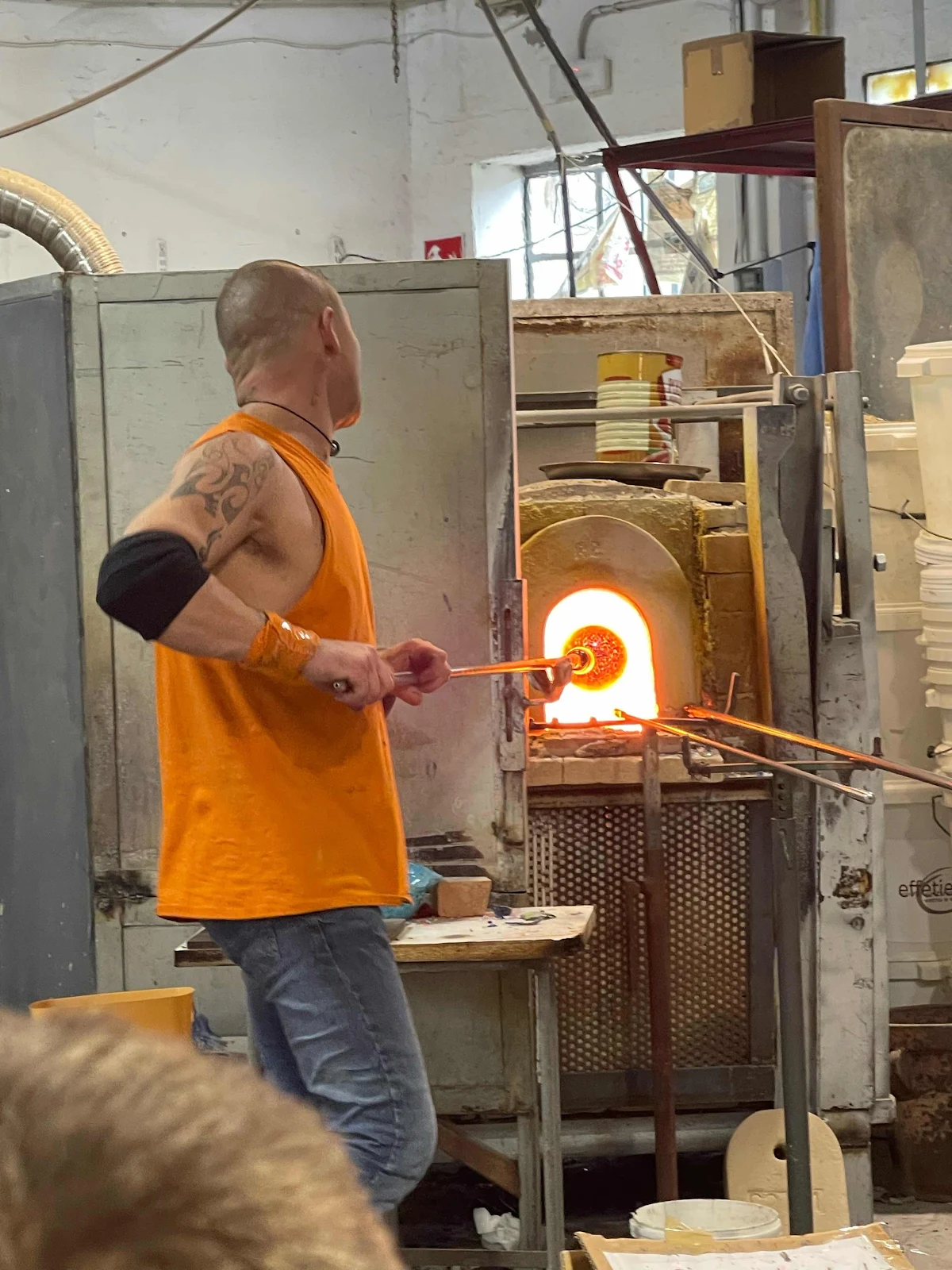 After complimentary strawberries for Jace and limoncellos for us, we said Mille Grazie and found out to a vaporetto going to Murano, where we happened upon a terrific glass blowing demonstration.