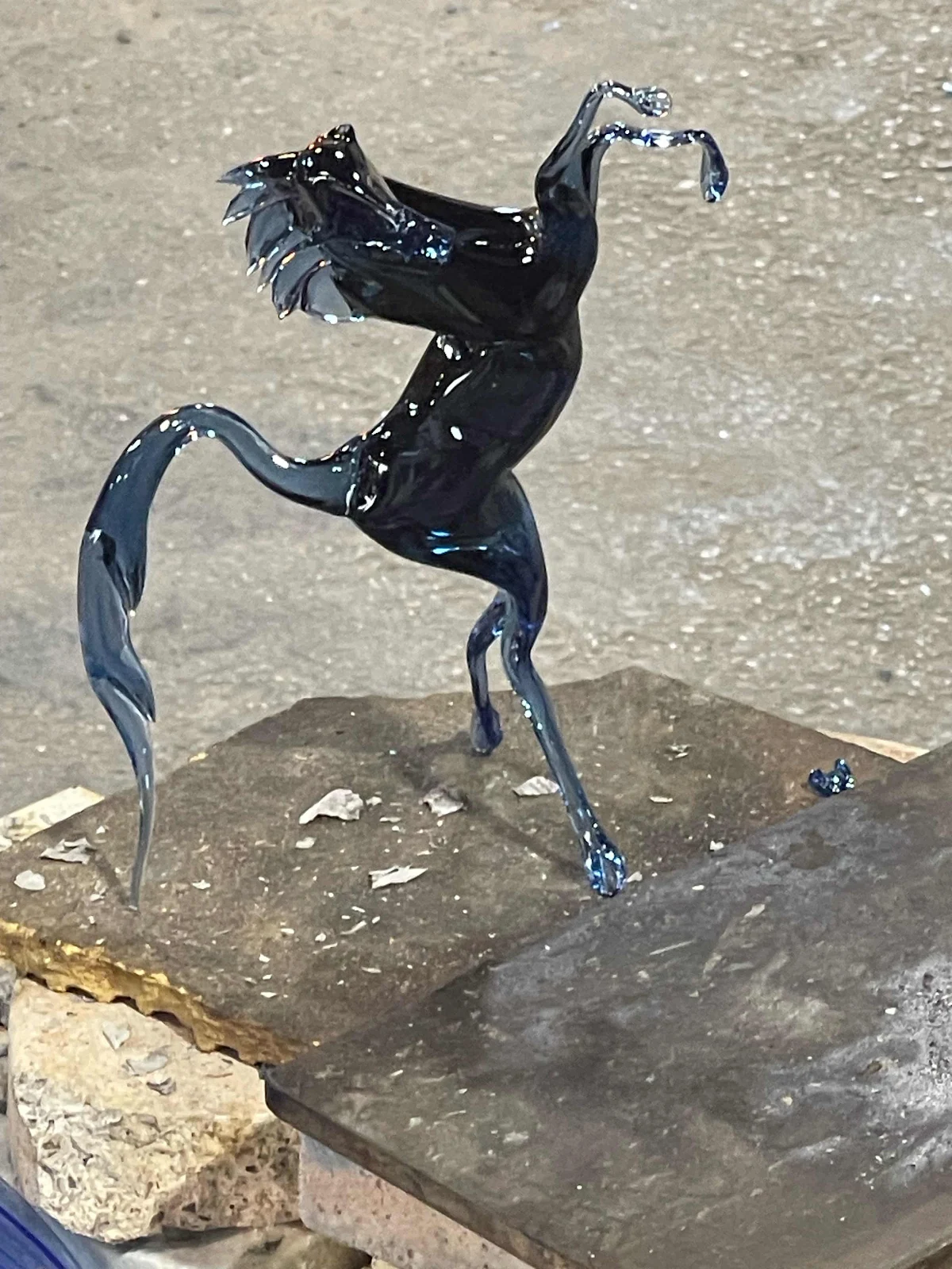 First a vase and then an amazing horse sculpture finished in a few minutes before our eyes.