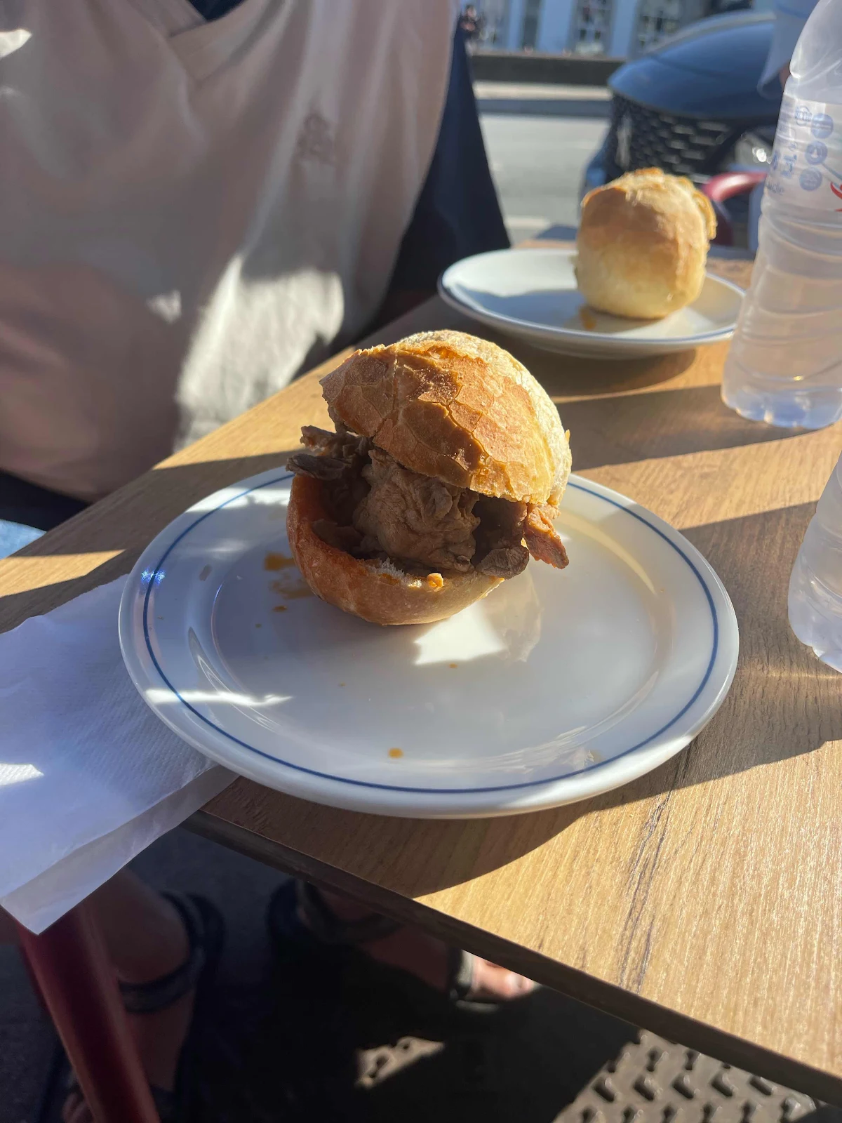 Our high-speed train to Lisbon didn’t leave until 1;00 pm, so we had some serious time to kill. After two rounds of Cappuccinos in a little train station snack bar, we walked across the street where Antonio recommended their Bifana, Portugal’s traditional marinated pork sandwich. Tasty!