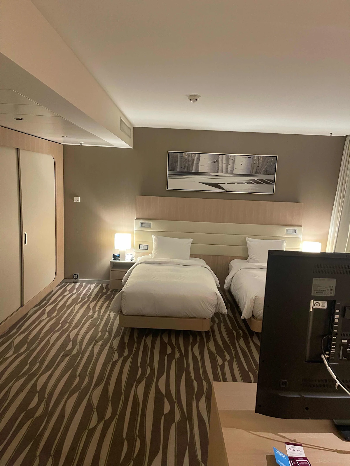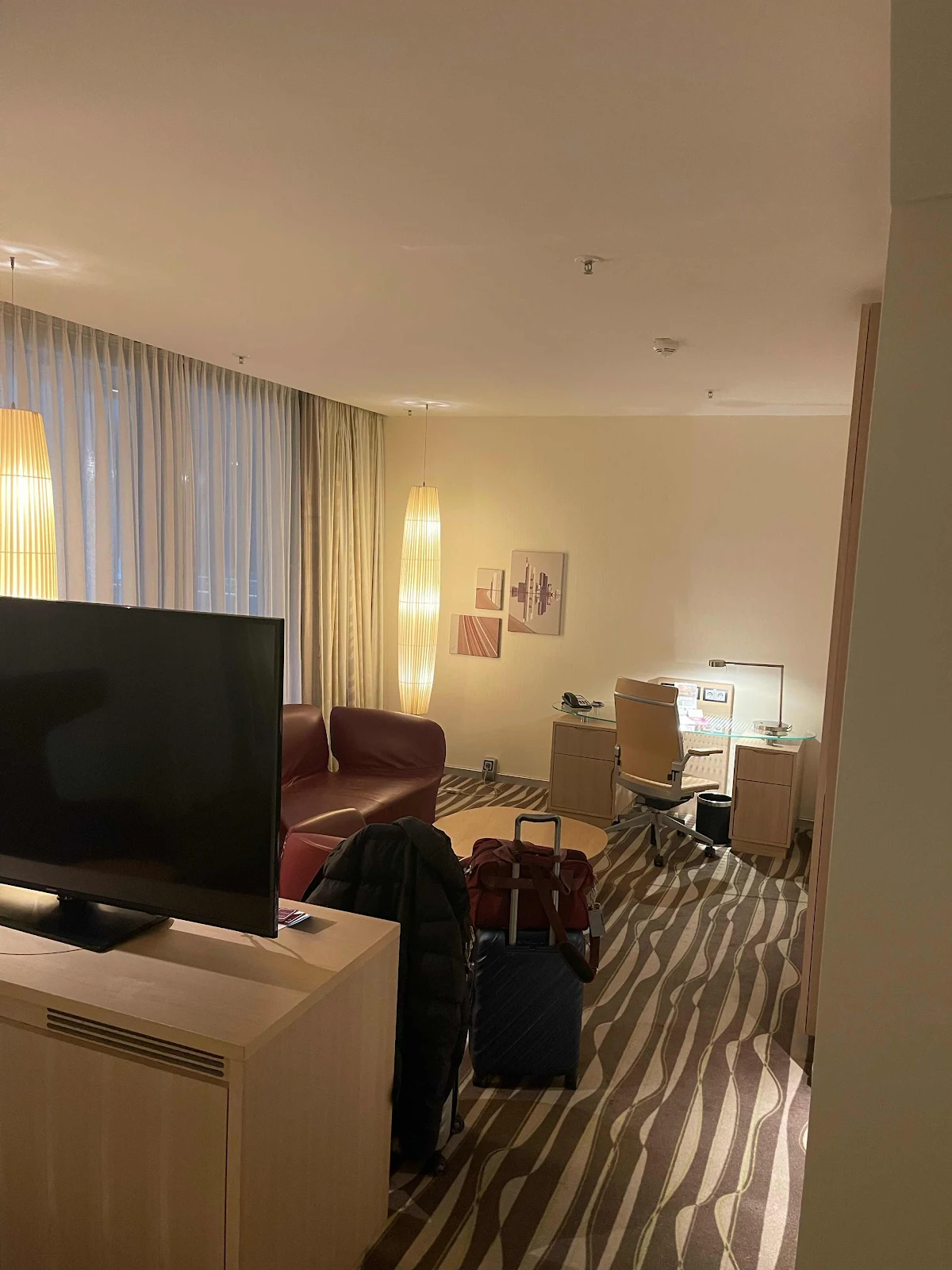 The Airport Hilton has a room ready for us at 9:00 am. Actually, we find ourselves in a junior suite. We’ve heard that Hilton Lifetime Diamonds are recognized in Europe, and are happy to confirm that in person.