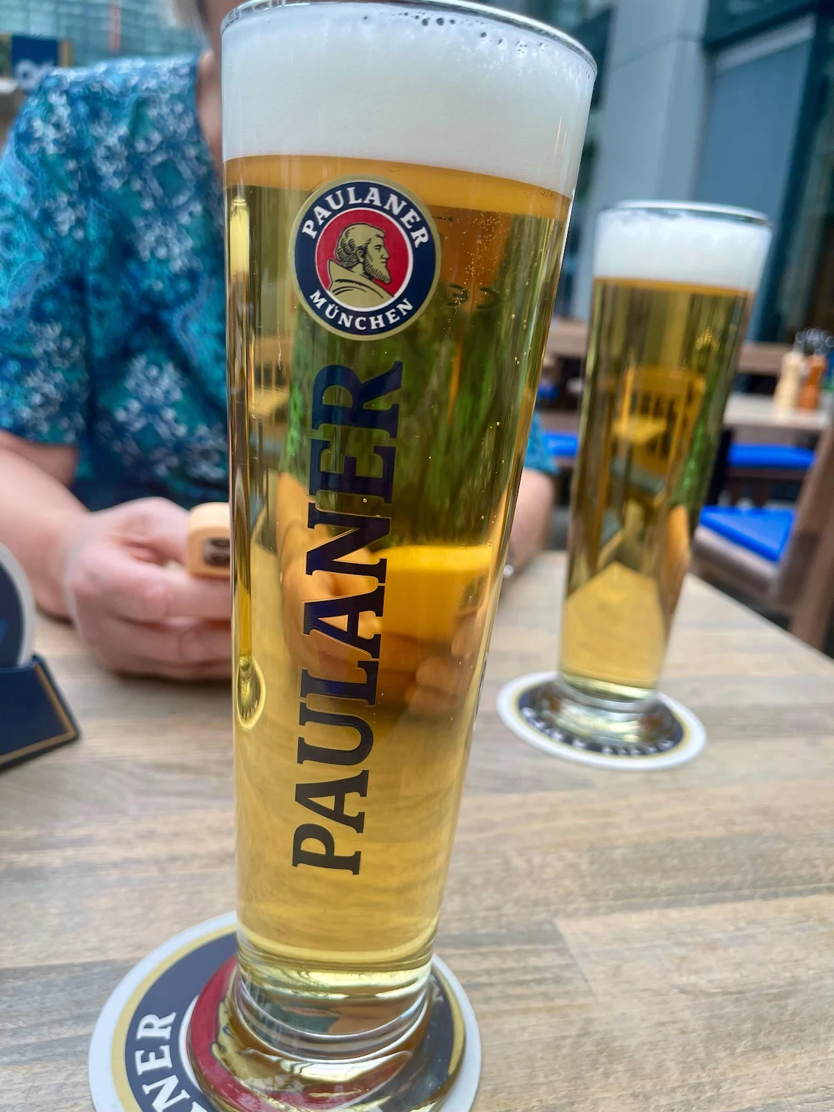 We nap and then visit our favored FRA restaurant, Paulaner, for a hearty German lunch.