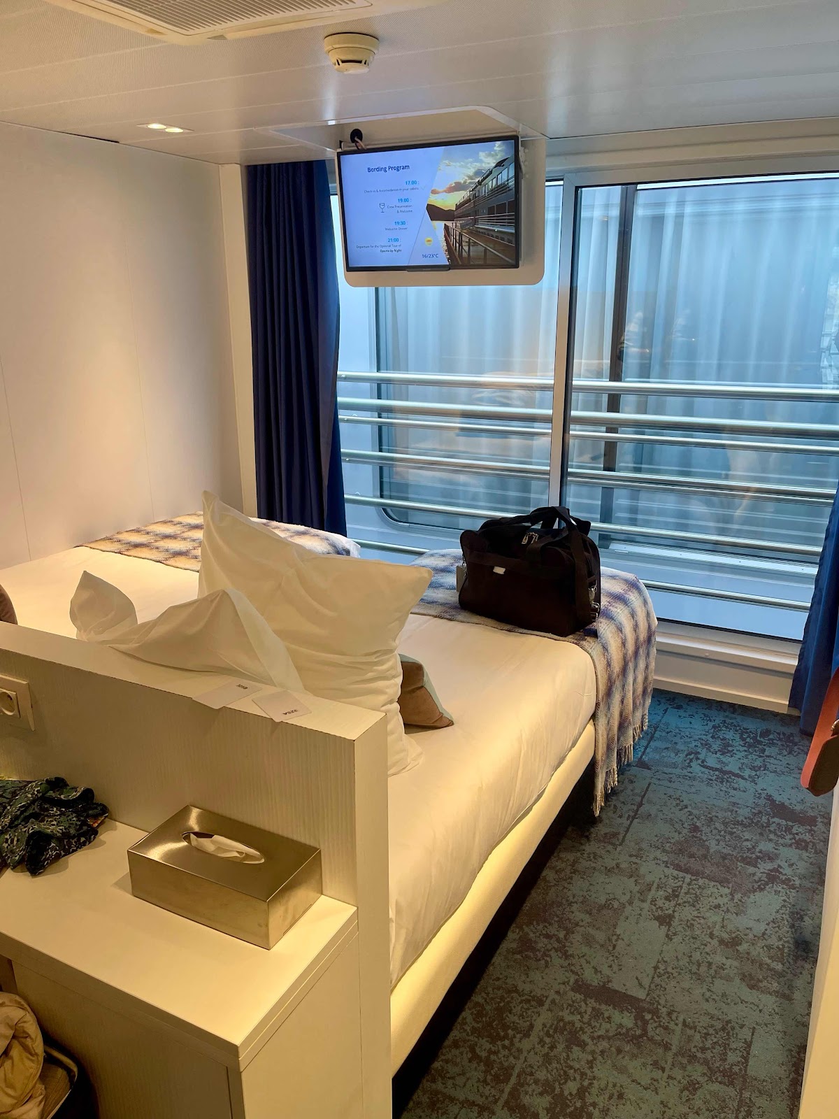 We board CroisiEurope’s Gil Eanesand and are escorted to our tiny cabins.