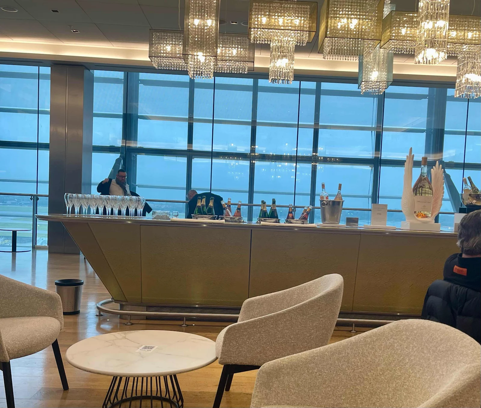Our BA business class tickets afforded us access to the Fast Track security lane, an oxymoron on this particular day. Brian’s rollaboard was pulled aside for extra screening just behind five other bags.