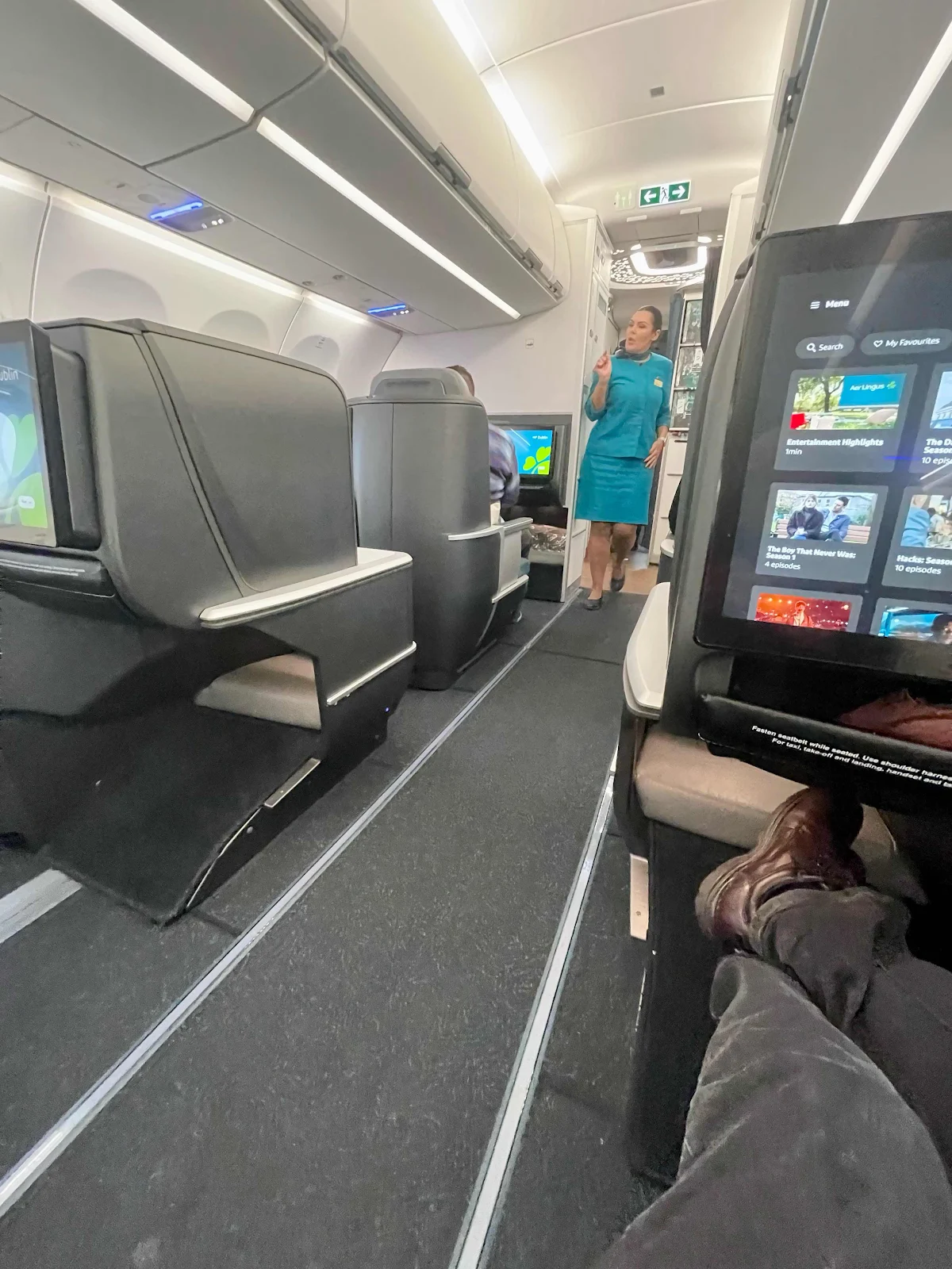 Ironically, we're both upgraded to First on the RJ 175. As we sit at the gate, the pilot tells us there's an "issue" and he has to shut everything down. Oh my! We sit in silence for a few minutes, wondering how jinxed we are. Fortunately, the engines start up, and the pilot explains that the previous crew failed to delete their flight plan from the onboard computer. Our crew had to basically reboot and start over. We’re finally off!