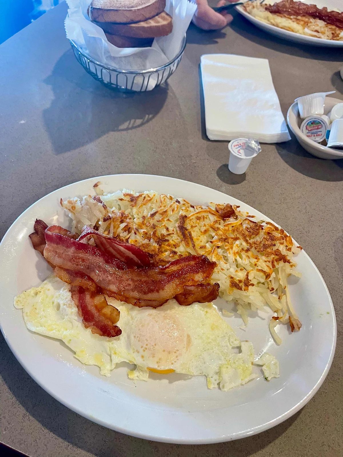 We have a reasonable sleep and eat breakfast in the same diner, mainly to kill time, with better results.
