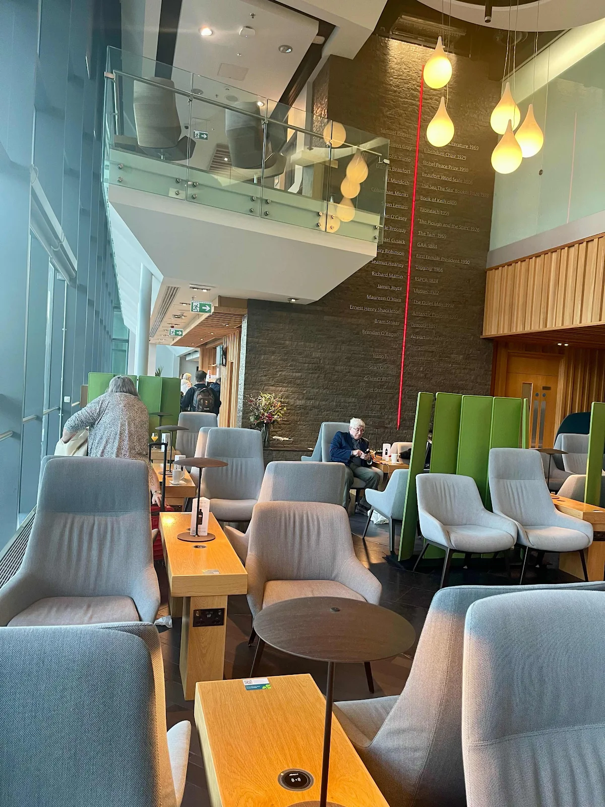 There's no queue for the bus transfer to Terminal 5. After the 10-minute ride we go through security for the second time and Kathy gets to undergo a "random" pat-down. Her bag is diverted for further inspection for no reason that we can tell, while Brian gets treated to a mild massage after going through the MMW machine.