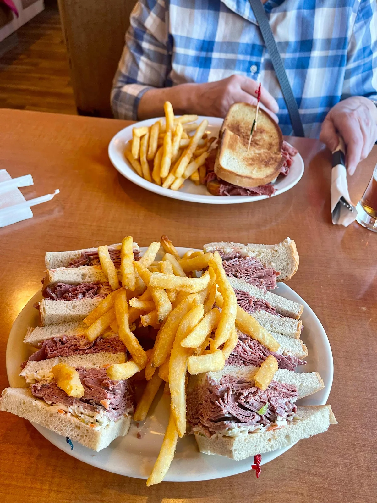 The hotel's restaurant is closed, but an old-fashioned diner sits across the street. The Reuben and corned beef sandwiches don't compare to our own, but the quantities are immense, and neither of us can manage more than half of our serving.