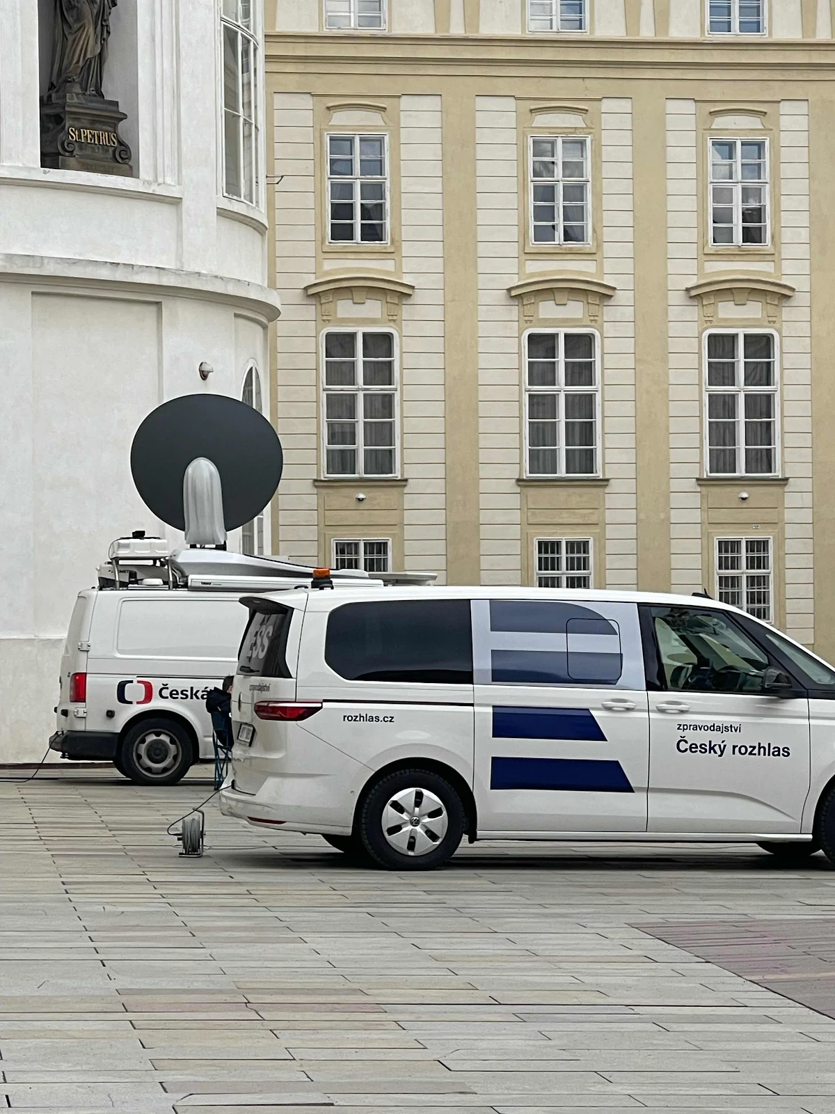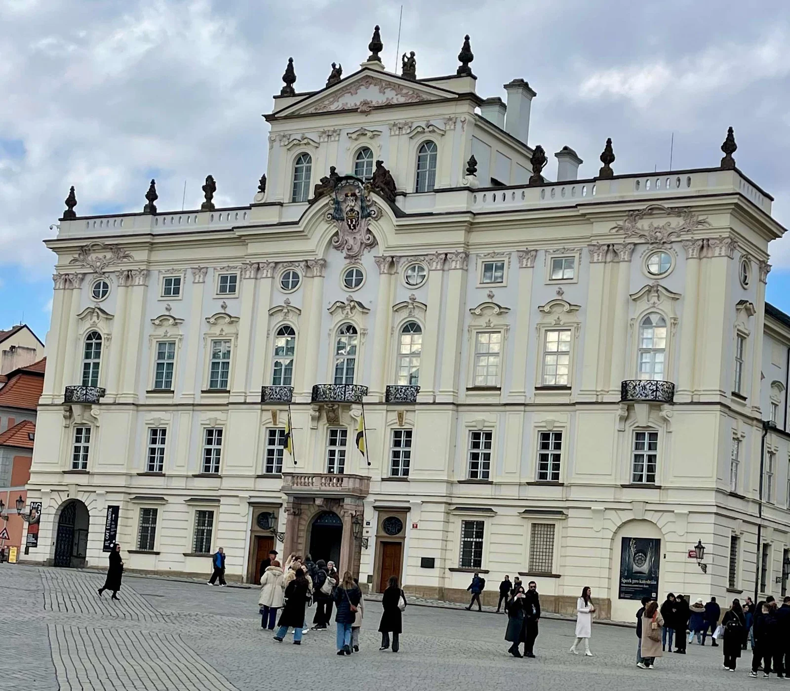 TV vans were parked, complete with satellite dish and a bank of microphones. This is the official residence and workplace of the president of the Czech Republic.