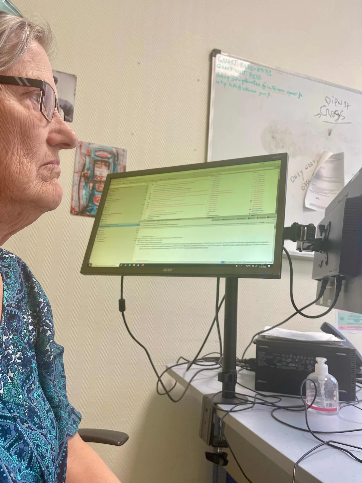 Here is Kathy a couple of hours later, sitting in a Tours police station as a policeman types a report.