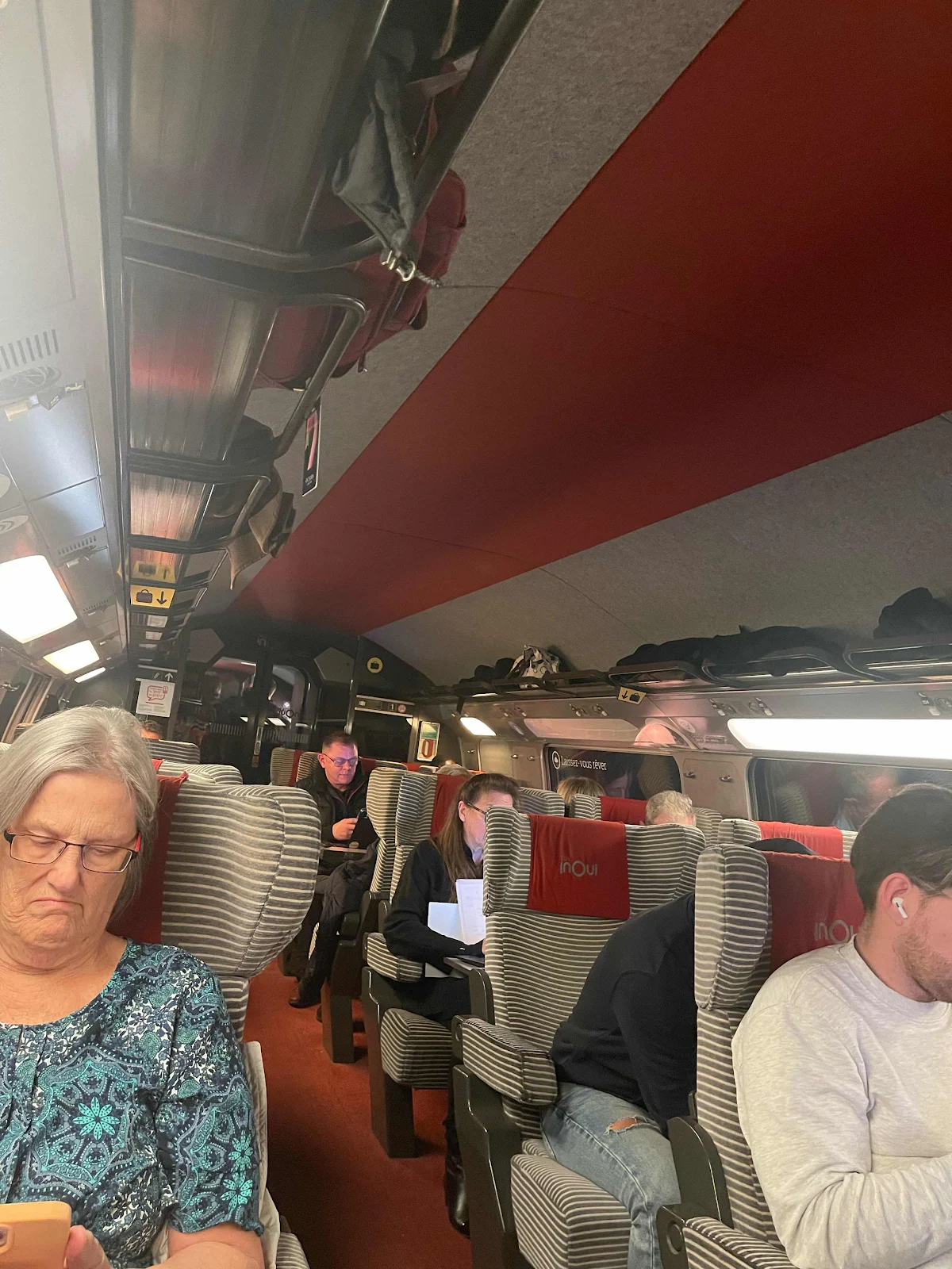 My purse was stolen today on the Train à Grande Vitesse #5224 between Charles de Gaulle Airport and Saint Pierre des Cours. The thief must have removed my shoulder bag from the rack above our heads while my husband and I were looking at our mobile phones. Train employees found the bag in the next car but the small purse labeled Oceania Cruises was missing. It contained my wallet with credit and debit cards, a phone battery, medical insurance cards, and a U.S. 20-dollar bill.