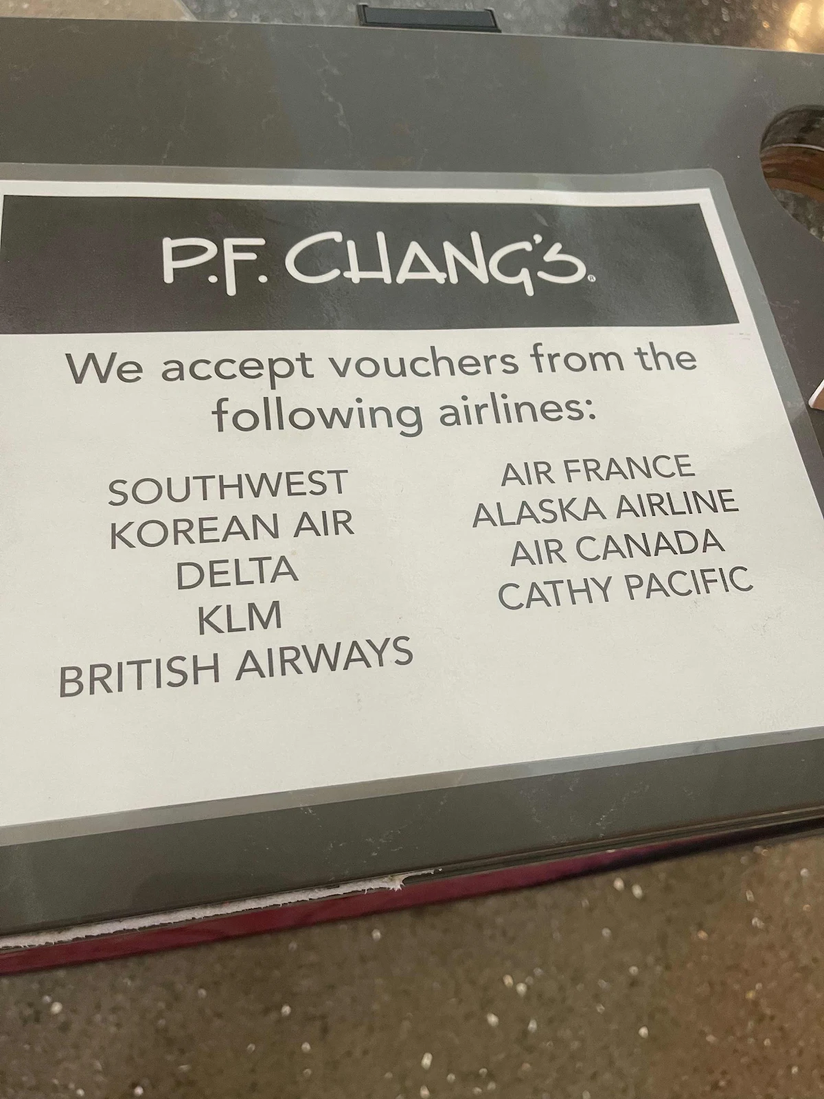 We returned to the airport after a few fitful hours of dozing, only to find the Qantas counter wasn’t yet open. We tried using an AA food voucher at the coffee stand, but it wouldn’t work, despite the employee’s best efforts. We saw later that the post-security PF Chang’s did not accept AA vouchers.